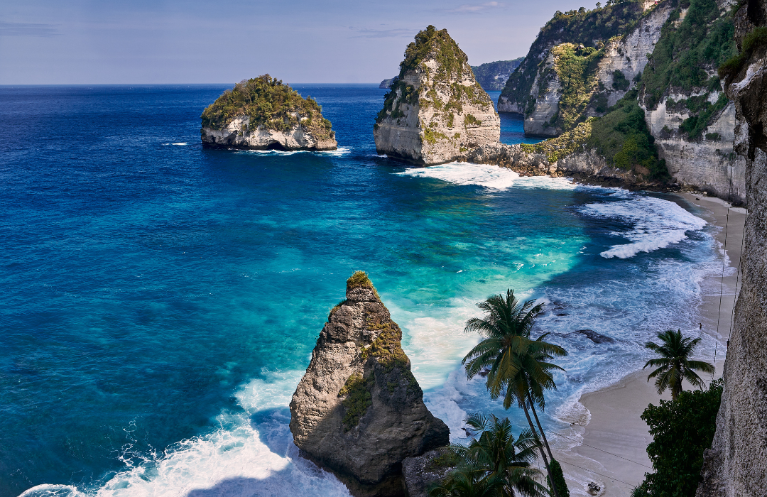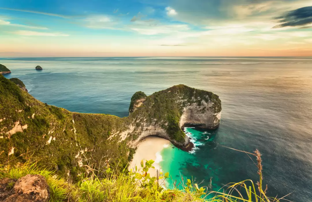 Marvel at Kelingking Beach, renowned for its T-Rex shaped cliff and pristine white sand. The dramatic cliffs and turquoise waters create a breathtaking scene, perfect for capturing stunning photos and enjoying nature’s beauty.